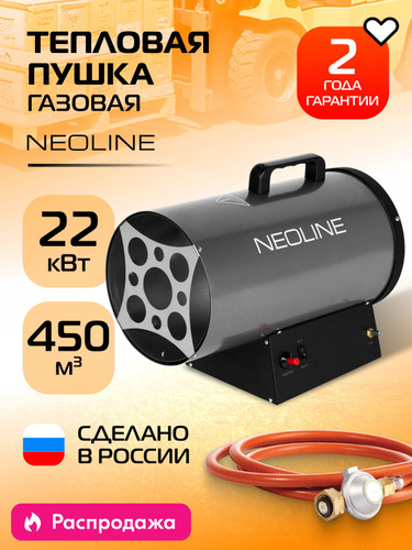 Газовая пушка тепловая NEOLINE NHG-30, серый, 22 кВт, 720 м3/час, защита IP10, для помещений до 450 куб.м.