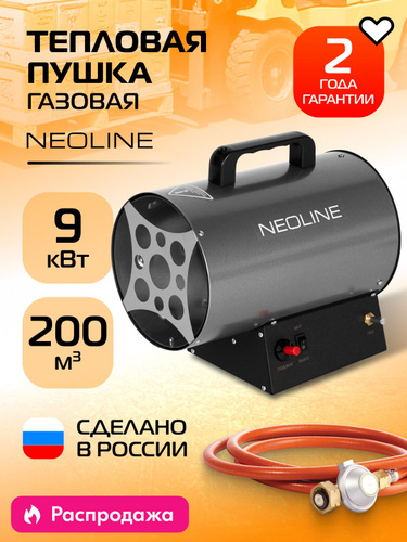 Газовая пушка тепловая NEOLINE NHG-10, серый, 9 кВт, 350 м3/час, защита IP10, для помещений до 200 куб.м.