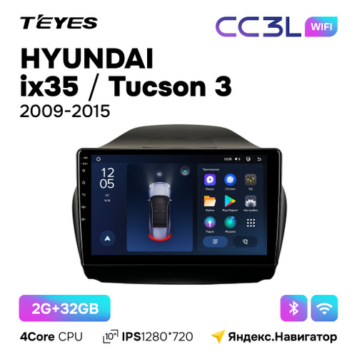 Автомагнитола Teyes CC3L Wi-Fi 2/32GB для Hyundai ix35 / Tuscon 3 (Хендай 35 / Туссан 3) 2009 - 2015 для комплектации авто без штатной камеры заднего вида, 10 дюймов,