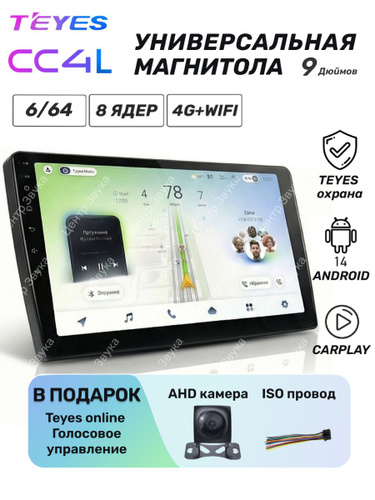 Магнитола TEYES CC4L 6/64 Гб 9 дюймов. Teyes Online+бесплатная активация голосового управления+КАМЕРА в ПОДАРОК! Без переходной рамки