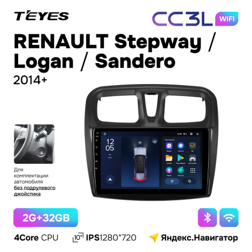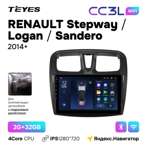 Автомагнитола Teyes CC3L Wi-Fi 2/32GB для Renault Stepway (Рено Степвей) 2014+ для комплектации авто с подрулевым джойстиком 10 дюймов