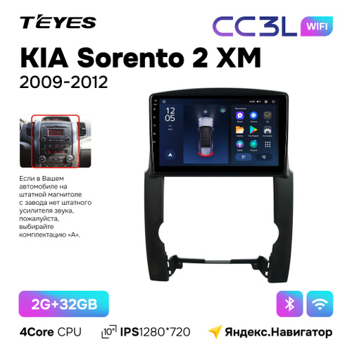 Автомагнитола Teyes CC3L Wi-Fi 2/32GB для Kia Sorento 2 XM (Киа Соренто 2 ХМ) 2009 - 2012 для комплектации авто без штатного усилителя 10 дюймов