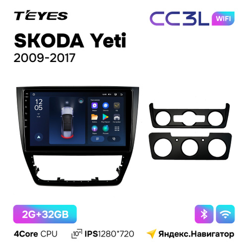 Автомагнитола Teyes CC3L Wi-Fi 2/32GB для Skoda Yeti (Шкода Йети) 2009 - 2017 для комплектации авто с климатом и кондиционером 10 дюймов