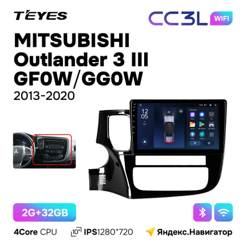 Автомагнитола Teyes CC3L Wi-Fi 2/32GB для Mitsubishi Outlander 3 III (Мицубиси Аутлендер 3) 2013 - 2020 для комплектации авто без штатной камеры заднего вида