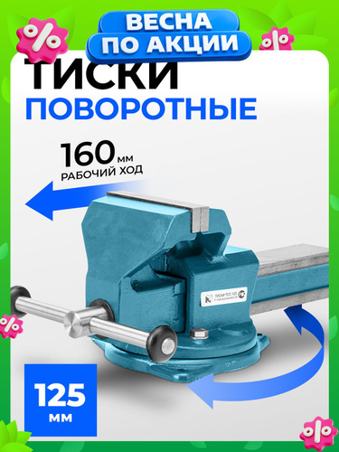 Тиски слесарные поворотные ГЛАЗОВ, 125 мм ширина рабочих губок, настольные, корпус из чугуна ВЧ50, губки из стали 50Х, рельефные прижимные губки, Россия, 18665