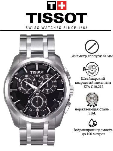 Часы наручные Кварцевые TISSOT COUTURIER AUTOMATIC CHRONOGRAPH VALJOUX, T035.614.11.051.00