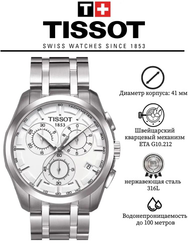 Часы наручные Кварцевые Tissot Couturier с хронографом