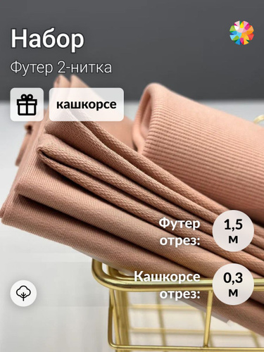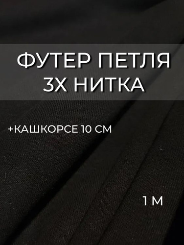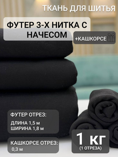 Ткань для шитья, Набор Футер с начесом 1,5 м и кашкорсе 0,3 м, черный 1 кг.