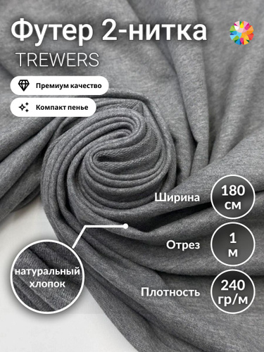 Футер 2х нитка ткань для шитья Trewers 1,8х1 м. Светло-серый меланж, RUNA TEX