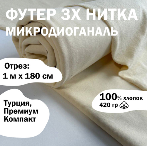 Ткань трикотажная Футер 3х нитка микродиагональ (трехнитка),ПЛОТНЫЙ, цвет сливочный, качество компакт пенье, размер 100см*185см