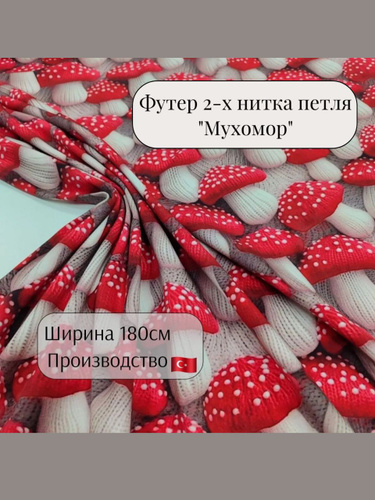 Футер 2-х нитка петля ткань для шитья Мухоморы