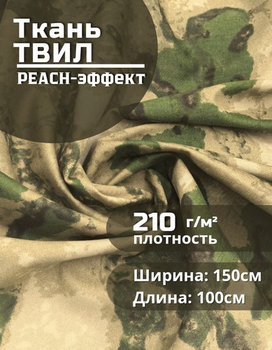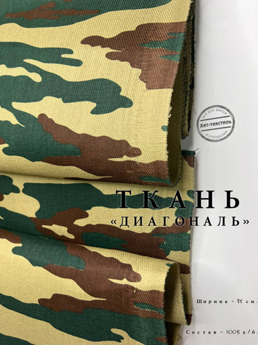 Ткань Диагональ камуфлированный, отрез 1 м, хлопок 100%, ширина 85 см, плотность 205 г/м2, Материал для шитья и рукоделия