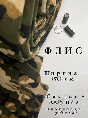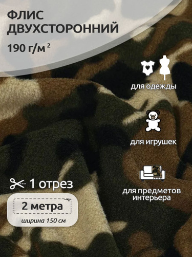 Ткань для шитья Флис Камуфляж Двусторонний, отрез 2 м, плотность 220г/м2, ширина 150 см