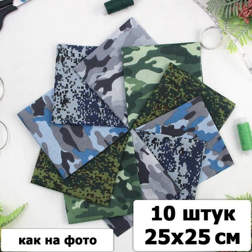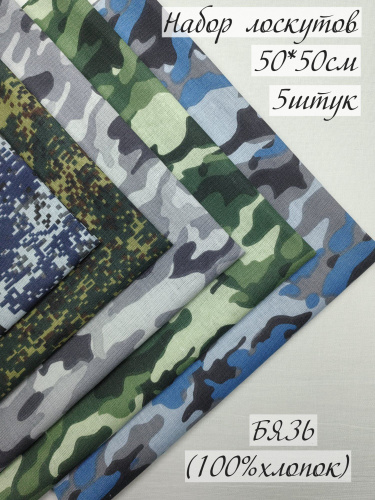 Лоскуты ткани для рукоделия набор, 50х50 см, 21 отрез, Камуфляж, хлопок 100%