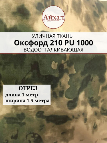Уличная ткань Оксфорд 210D ПУ 1000 Камуфляж_Мох. Oтрез 1 метр. Водонепроницаемая, для охоты, рыбалки. Материал для маскировки, сумок, тентов