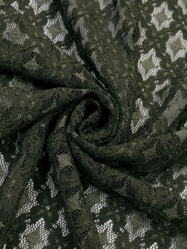 Ткань кружево эластичное широкое, зеленый милитари, Италия, 1 метр