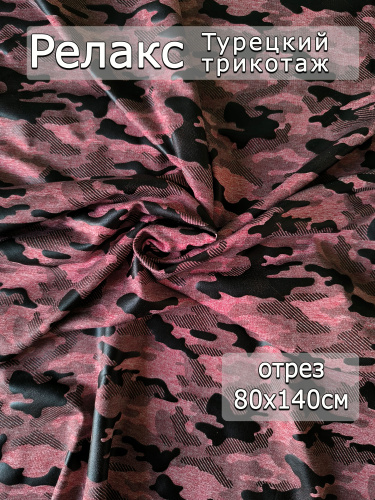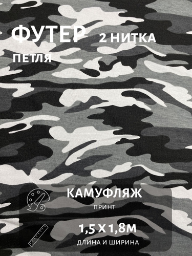 Ткань Футер 2х нитка петля без кашкорсе, отрез 150 см*180 см, принт камуфляж. Трикотаж для шитья и рукоделия