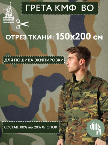 Ткань для шитья, ткань камуфляжная ВСР-98 "ФЛОРА" с ВО пропиткой саржа 240г/м 1*1,55м