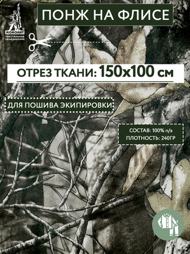 Ткань для шитья Флис Камуфляж Двусторонний, отрез 1 м, плотность 220г/м2, ширина 150 см
