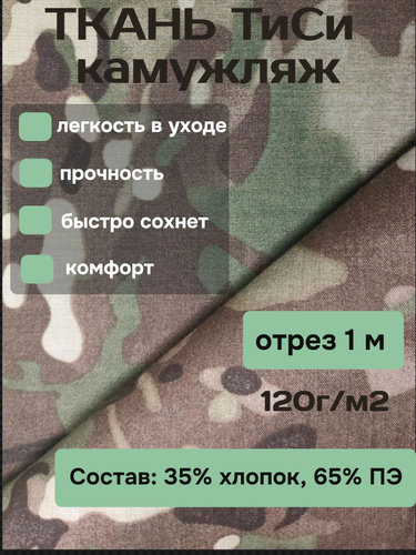 Ткань ТиСи камуфляж (мультикам) отрез 1 метр