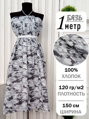 Ткань бязь хлопок "Камуфляж серый" длина 1 метр, ширина 150 см, для шитья и рукоделия