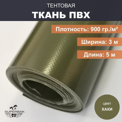 Ткань тентовая ПВХ на отрез ширина 3 м, длина 5м, плотность 900 гр/м, хаки