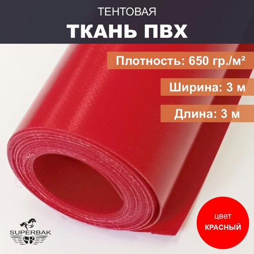 Ткань тентовая ПВХ на отрез ширина 3 м, длина 3м, плотность 650 гр/м, красная