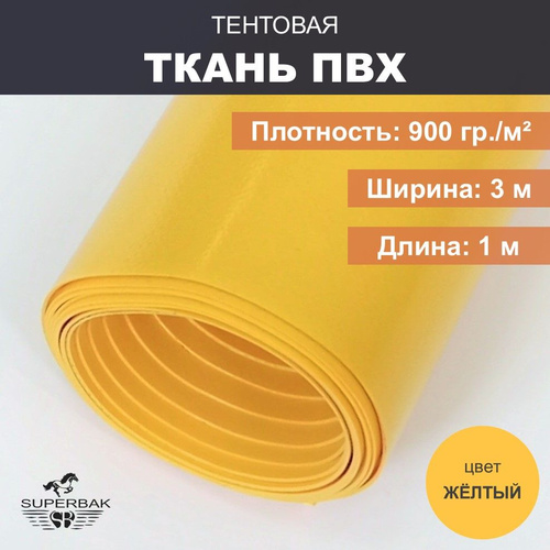 Ткань тентовая ПВХ на отрез ширина 3 м, длина 1м, плотность 900 гр/м, желтая