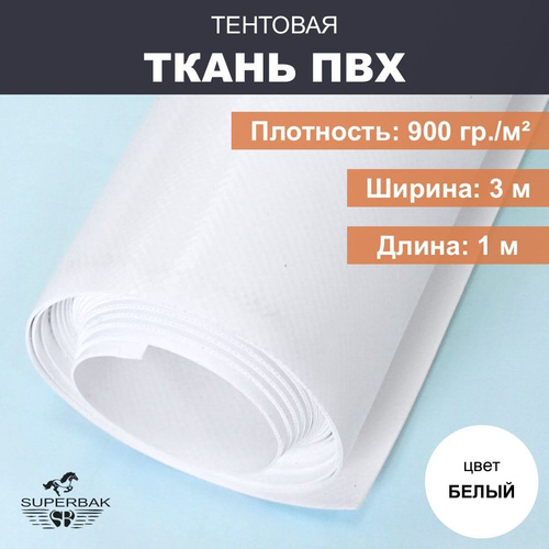 Ткань тентовая ПВХ на отрез ширина 3 м, длина 1м, плотность 900 гр/м, белая