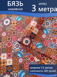 Кусочек с кромкой. Упакован в пакет с клеевым клапаном.Бязь. Обычная,бязь.Рисуночек чудесный,яркие краски,на обшивку края коврика, мне в самый раз.
