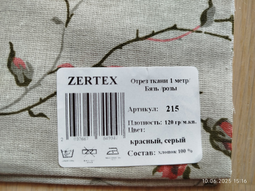 Красивая ткань. Понравилось то,что продавец наклеивает этикетку на отрез с условиями ухода за тканью.