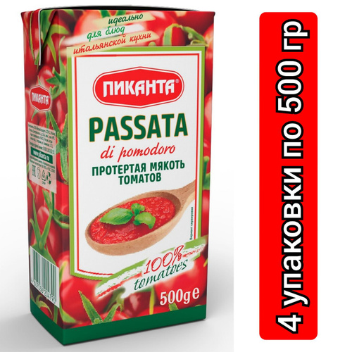 Пиканта Протертая мякоть томатов, Passata di pomodoro,500 гр./4 упаковки