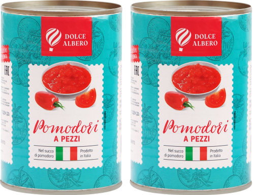 Томаты DOLCE ALBERO кусочками в томатном соке, 2 уп по 400 г