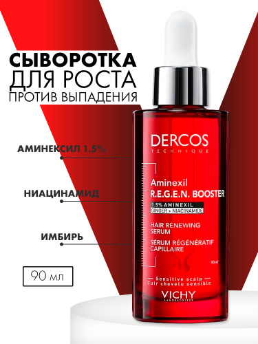 VICHY DERCOS AMINEXIL REGEN Сыворотка для укрепления и роста волос, 90 мл Против выпадения, для роста новых волос и густоты, с Аминексилом 1.5% и ниацинамидом
