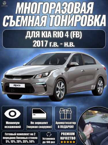 PREMIUM / Силиконовая тонировка KIA Rio 4/ Rio X/ Rio X-Line (2016-2022) (FB) 5% / Премиум Съёмная многоразовая тонировка киа рио 4/рио х 5%