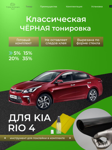 Автомобильная тонировка 15% Kia Rio 2011-2017 год 3 поколение, Тонировочная пленка для автомобиля Киа Рио на клеевой основе одноразовая, Черная тонировка
