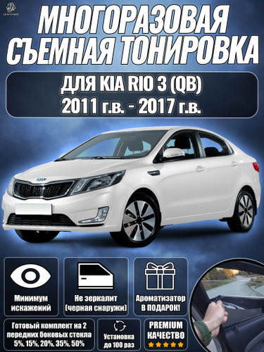 PREMIUM / Силиконовая тонировка KIA Rio 3 (2011-2017) (QB) 15% / Премиум Съёмная многоразовая тонировка киа рио 3 15%