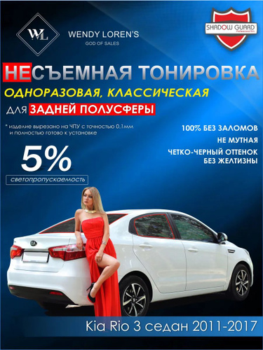 Тонировка задних стекол Kia Rio 3 седан 2011-2017 5%, на заднюю полусферу