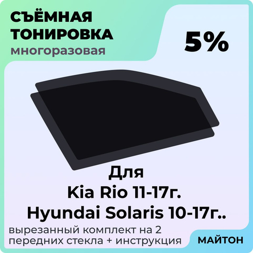 Тонировка съемная для Киа Рио 3 Хендай Солярис 1 Тонировка съемная для Kia Rio 3 Hyundai Solaris 1 Быстросъемная тонировка 5%