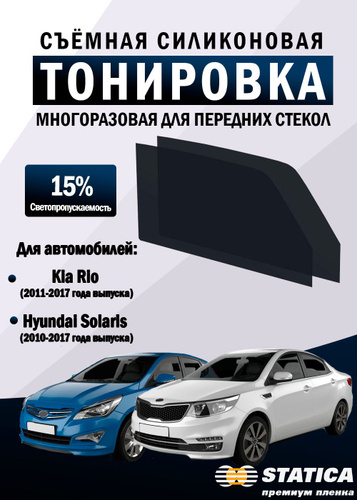 Тонировка съемная для Kia Rio, Hyundai Solaris 15% силиконовая многоразовая пленка Statica