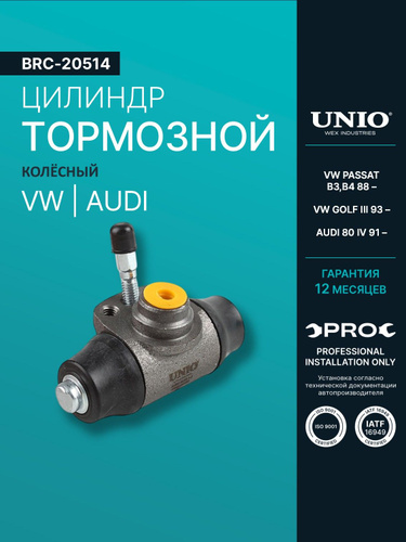 Цилиндр тормозной рабочий, для Фольксваген Пассат B3, B4 88-, Гольф III 93-, Ауди 80 IV 91-, Volkswagen Passat Golf Audi 91- артикул BRC-20514 производителя UNIO