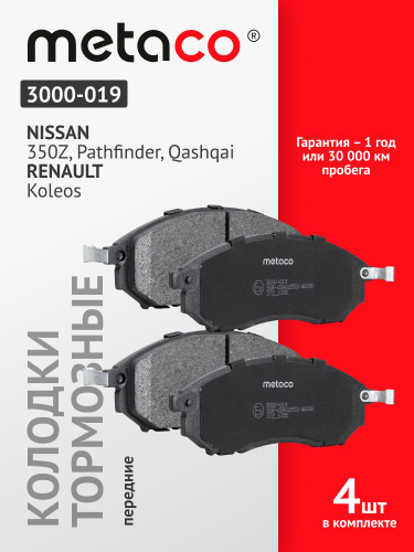 Колодки тормозные METACO передние, Nissan Ниссан Pathfinder Патфайндер, 410600023R, 41060-0V790, 3000-019, комплект