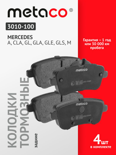 Колодки тормозные дисковые METACO задние, Mercedes Мерседес W166 M-Class M-класс, 4206504, 4208704, 3010-100, комплект
