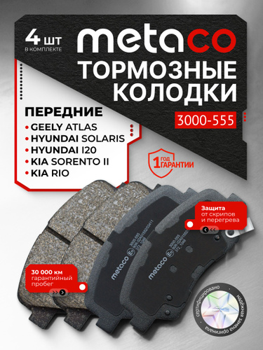 Колодки тормозные передние METACO 3000-410 для HYUNDAI SOLARIS (2010>) RIO (2011>)
