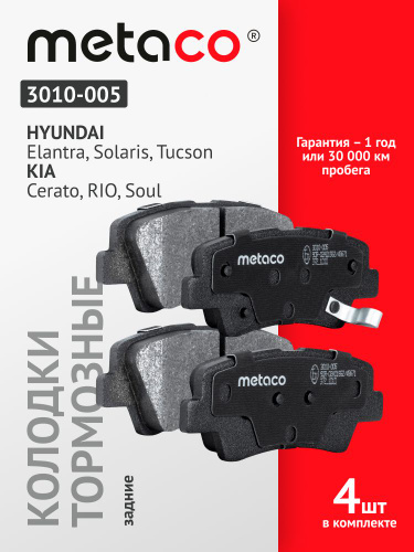 Колодки тормозные задние дисковые METACO 3010-005 для HYUNDAI SOLARIS (2010>)/CEED (2012>)