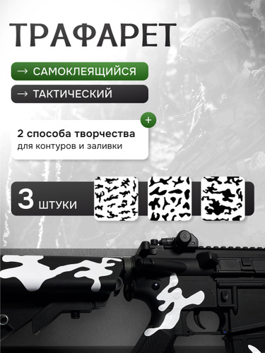 Набор самоклеющихся трафаретов 3шт Мультикам камуфляж для оружия, снаряжения и инвентаря