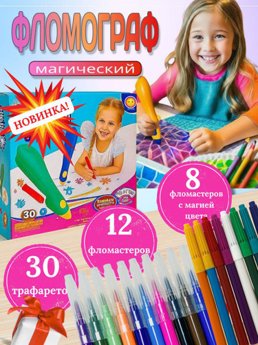 Фломограф электрический для рисования с трафаретами и набором фломастеров