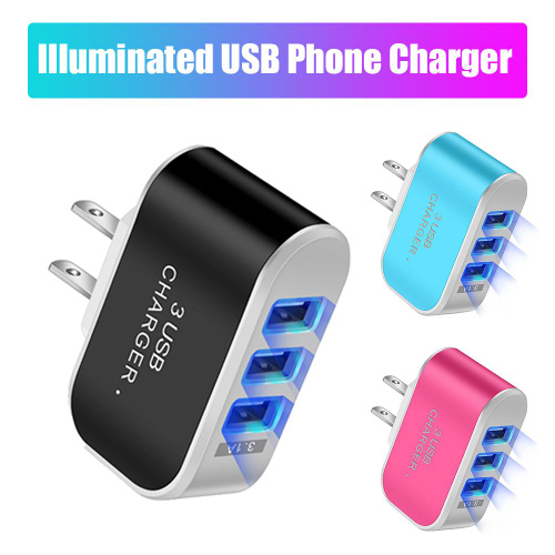 USB зарядное устройство 3 порта быстрая зарядка американская вилка черный