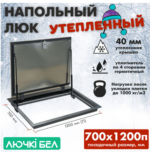 Люк напольный 700х1200П утепленный с газовыми амортизаторами