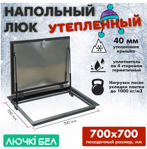 Люк напольный 700х700 утепленный с газовыми амортизаторами